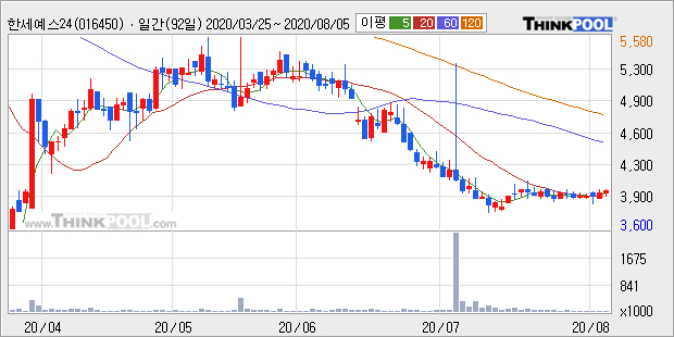 [그래프]한세예스24홀딩스 일봉 차트