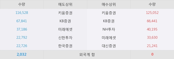 이 시간 KB증권이 매수창구상위에 올라있는 종목은 이 종목 이외에도 케이디켐, KODEX 기계장비 등이 있다.