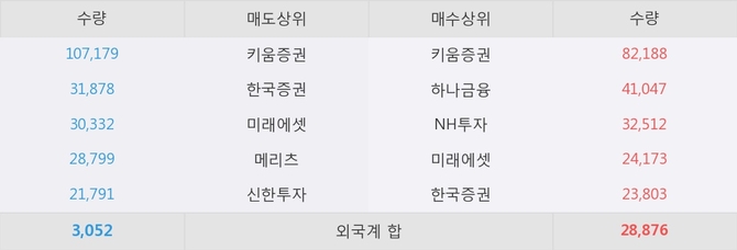 거래원 동향은 하나금융, NH투자, 미래에셋 등이 매수 상위 목록에 나타나고 있다.