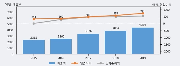 최근 3년간의 실적을 살펴보면 안정적 성장세를 보이고 있다. 최근 3년간 매출로 볼 때 매년 꾸준히 증가하고 있다. 다만 최근에 그 증가폭이 다소 감소하고 있다.