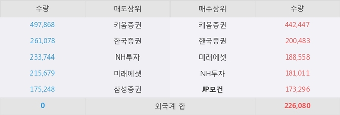 거래원 동향은 JP모건, 미래에셋, NH투자 등이 매수 상위 목록에 나타나고 있다.