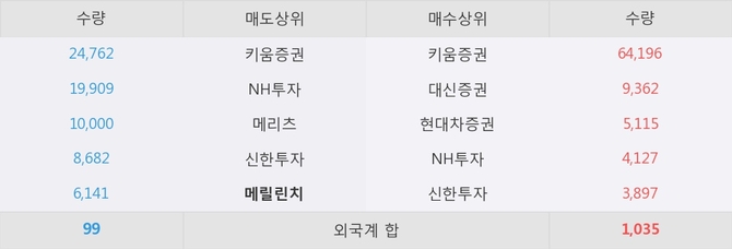 이 시각 주요 거래원은 NH투자, 키움증권, 대신증권 등이 매수 상위 창구에 자리하고 있다. 한편, 매도 창구 상위에는 메릴린치가 눈에 띄고 있다.
