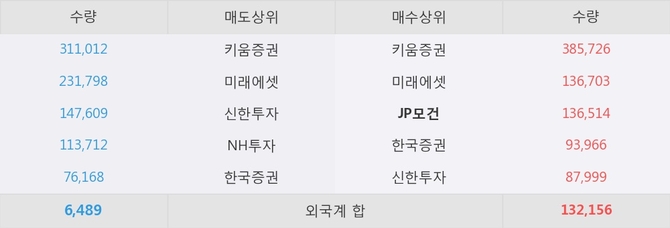 거래원 동향은 JP모건, 미래에셋이 매수 상위 목록에 나타나고 있다.