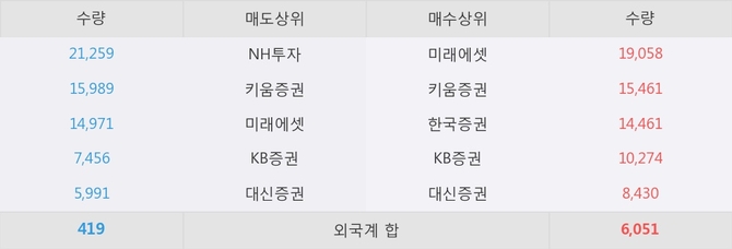 이 시각 주요 거래원은 미래에셋, 키움증권, 한국증권 등이 매수 상위 창구에 자리하고 있다.