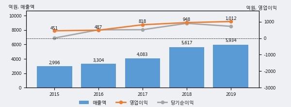 최근 3년간의 실적을 살펴보면 안정적 성장세를 보이고 있다. 최근 3년간 매출로 볼 때 매년 꾸준히 증가하고 있다. 다만 최근에 그 증가폭이 다소 감소하고 있다.