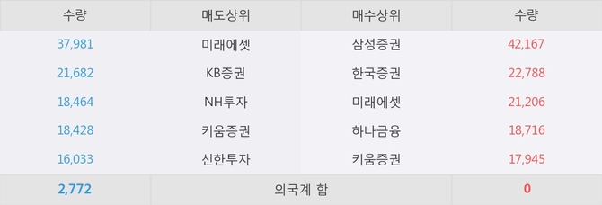 거래원 동향은 삼성증권, 미래에셋, 하나금융 등이 매수 상위 목록에 나타나고 있다.