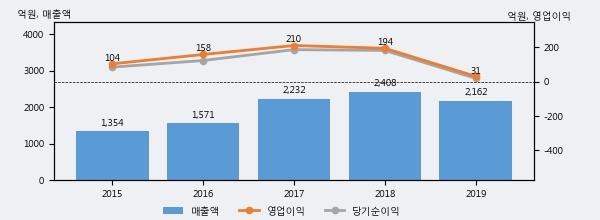 다스코의 2019년 매출액은 2162억으로 전년대비 -10.2% 하락했고, 영업이익 역시 31억으로 전년대비 -84.3% 하락했다. 이 회사의 매출액 증감률과 영업이익 증감률은 각각 코스피 하위 14%, 하위 13%에 해당된다.