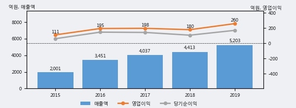 최근 3년간의 실적을 살펴보면 안정적 성장세를 보이고 있다. 최근 3년간 매출로 볼 때 매년 꾸준히 증가하고 있고 그 증가폭도 확대되고 있다.