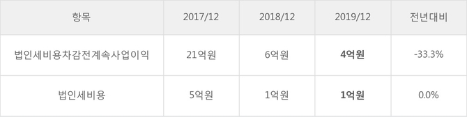 이화공영의 지난 3년 동안 법인세 납부액 추이를 보면 각각 5억원, 1억원, 1억원을 기록하고 있다.