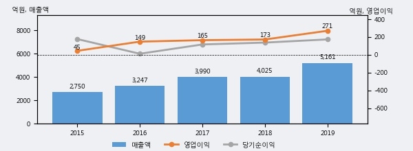 최근 3년간의 실적을 살펴보면 안정적 성장세를 보이고 있다. 최근 3년간 매출로 볼 때 매년 꾸준히 증가하고 있고 그 증가폭도 확대되고 있다.