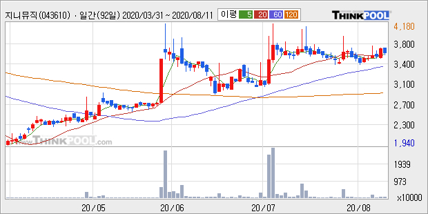 지니뮤직은 2019년 매출액 2305억원과 영업이익 81억원을 기록했다. 전년대비 매출은 34.6%, 영업이익은 18.0% 각각 상승했다. 이 회사의 매출액 증감률과 영업이익 증감률은 각각 코스닥 상위 15%, 상위 41%에 해당된다.