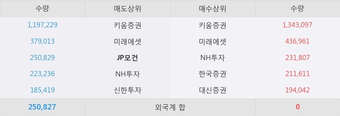 거래원 동향은 미래에셋, NH투자 등이 매수 상위 목록에 나타나고 있다. 한편, 매도 창구 상위에는 JP모건이 눈에 띄고 있다.