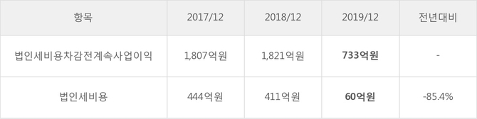 SKC의 지난 3년 동안 법인세 납부액 추이를 보면 각각 444억원, 411억원, 60억원으로 매년 감소하고 있다.