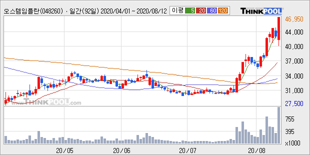 차트상 주가의 흐름은 현재 단기·중기 이평선이 정배열 상태로 전형적인 상승세를 보이고 있다.