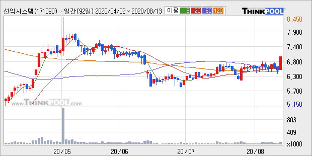 차트상 주가의 흐름은 현재 단기·중기 이평선이 정배열 상태로 전형적인 상승세를 보이고 있다. 최근 이 종목의 차트에서 삼선전환도(양전환), 주가 5MA 상향돌파 등의 특이사항이 발생했다.