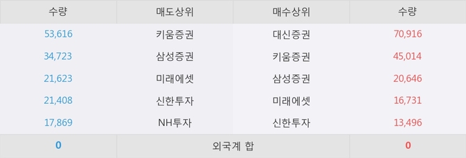 거래원 동향은 삼성증권, 미래에셋 등이 매수 상위 목록에 나타나고 있다.