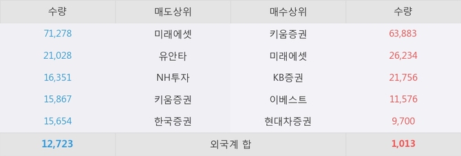 이 시각 주요 거래원은 미래에셋, 키움증권, KB증권 등이 매수 상위 창구에 자리하고 있다.