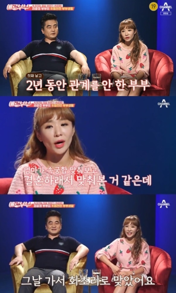 17일 방송된 채널A '애로부부'에서는 라윤경, 김시명 부부가 출연해 "아이를 낳은 뒤 오랜 시간 성관계를 갖고 있지 않다"라며 고민을 토로했다.
