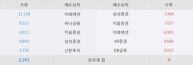 거래원 동향은 미래에셋, 하나금융, 삼성증권 등이 매도 상위 목록에 나타나고 있다.