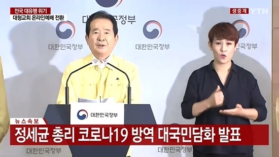 정세균 중앙재난안전대책본부 본부장 겸 국무총리는 18일 대국민담화에서 "코로나19 감염 확산 차단을 위해 수도권에 대한 사회적 거리두기를 보다 강화하기로 결정했다"고 밝혔다.