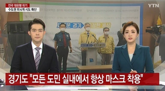 18일 이재명 경기도지사는 "경기도내 거주자 및 방문자는 일상적 사생활이나 음식물 섭취 등 불가피한 경우를 제외하고 실내, 그리고 집회 공연 등 다중이 집합한 실외에서 마스크를 의무적으로 착용해야 한다"며 마스크 의무 착용 행정명령을 발동했다.