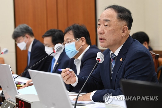 홍 부총리는 이날 국회 기획재정위원회 전체회의에 출석, 부동산감독기구 설치 필요성을 지적한 더불어민주당 양경숙 의원 질의에 "(의원 설명이) 금융감독원을 염두에 둔 것인지 모르겠지만, 정부로서는 감독기구를 만드는 것에 대해 협의 초기 단계이고, 정부 입장은 아무것도 결정된 바가 없다"면서 이렇게 밝혔다.