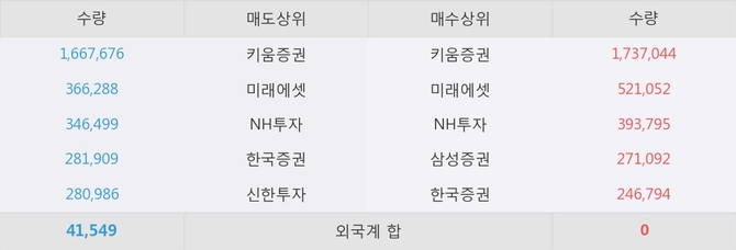 거래원 동향은 미래에셋, NH투자, 삼성증권 등이 매수 상위 목록에 나타나고 있다.