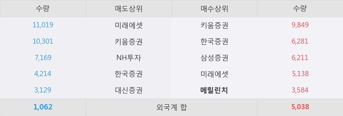 거래원 동향은 메릴린치, 삼성증권, 미래에셋 등이 매수 상위 목록에 나타나고 있다.
