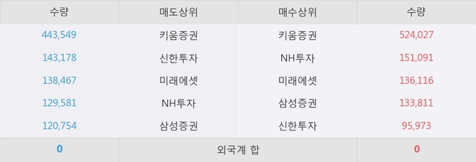 거래원 동향은 NH투자, 미래에셋, 삼성증권 등이 매수 상위 목록에 나타나고 있다.