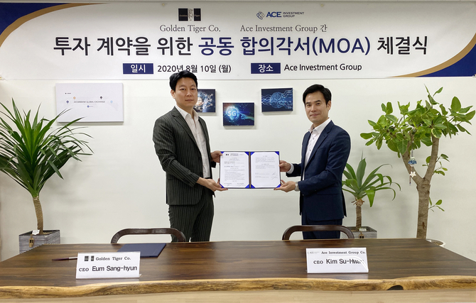 (조세금융신문=구재회 기자) 글로벌 투자회사 '에이스인베스트먼트그룹(Ace Investment Group)'이 지난 8월 10일 골든타이거(Golden Tiger)와 공동 합의각서(MOA)를 체결했다고 밝혔다.