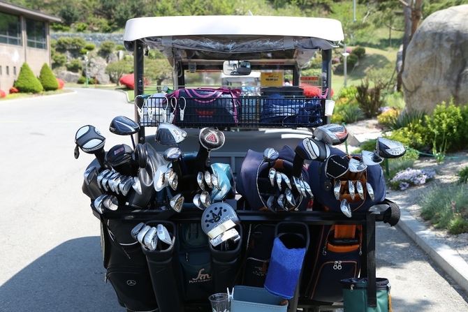 캐디가 하는 일은 라운드(Round)를 시작하기 전에 위 사진처럼 4개의 고객 골프 백을 카트에 싣고 클럽을 정리하는 단순한 일부터 시작한다. 라운드 중에 바람의 방향이나 잔디의 스피드, 날씨의 변화, 골퍼의 심리적인 상태 등을 감안하는 행위를 나열하면, 사소한 일부터 심리학 전공자처럼 해야 하는 일이 너무나도 많다.