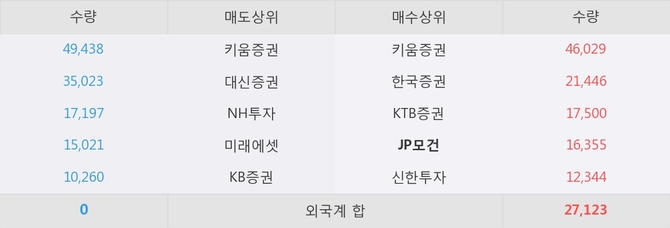 JP모건이 매수상위 창구 4위를 기록중이고, 그 외에 키움증권, 한국증권 등이 매수 창구 상위에 위치하고 있다.