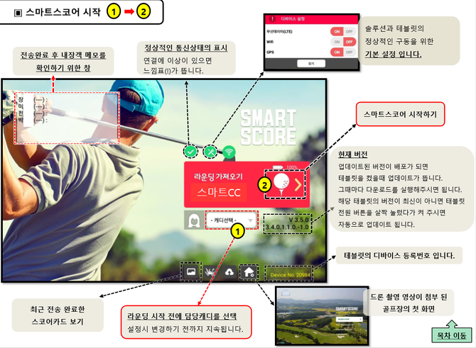 | 스마트 스코어(기초) | 고객 등록하기, 전화번호 입력하기, 사진찍기(티오프, 홀 아웃), 전송하기 | ||