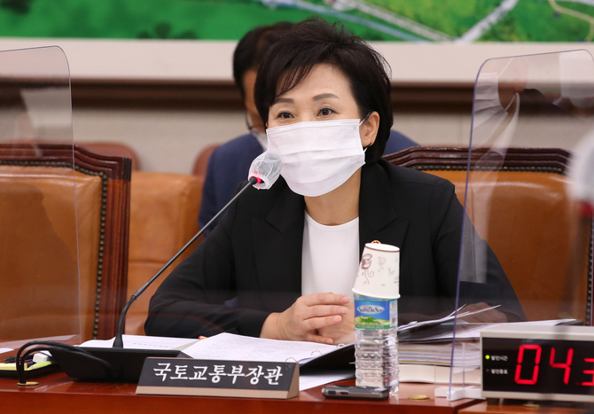 앞서 김 장관은 지난 25일 국회 국토교통위에서 '주택 시세 등을 발표할 때는 감정원 자료를 쓰면서 대출 규제에는 KB 시세 자료를 활용하는 등 기준이 일정치 않다'는 지적을 받자 "앞으로 감정원 시세를 중심으로 정리해 나가겠다"고 말했다.