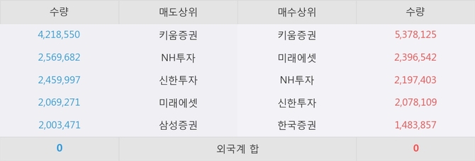 거래원 동향은 NH투자, 미래에셋, 삼성증권 등이 매도 상위 목록에 나타나고 있다.
