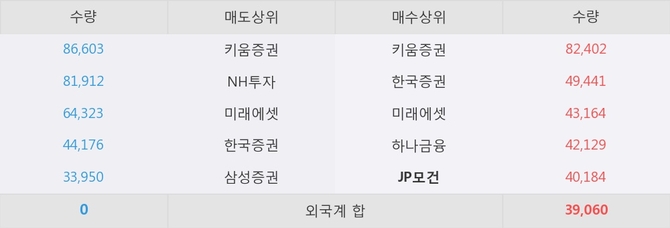 거래원 동향은 JP모건, 미래에셋, 하나금융 등이 매수 상위 목록에 나타나고 있다.