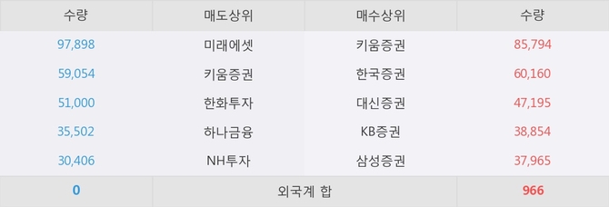 이 시각 주요 거래원은 삼성증권, 키움증권, 한국증권 등이 매수 상위 창구에 자리하고 있다.