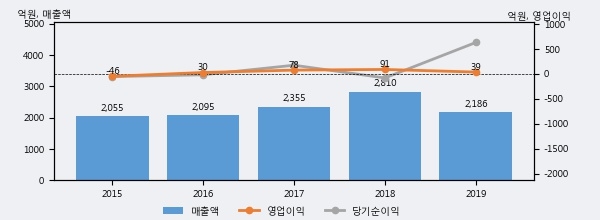 대명소노시즌은 2019년 매출액 2186억원과 영업이익 39억원을 기록했다. 전년대비 매출은 -22.2%, 영업이익은 -57.3% 각각 하락했다. 이 회사의 매출액 증감률과 영업이익 증감률은 각각 코스닥 하위 14%, 하위 26%에 해당된다.