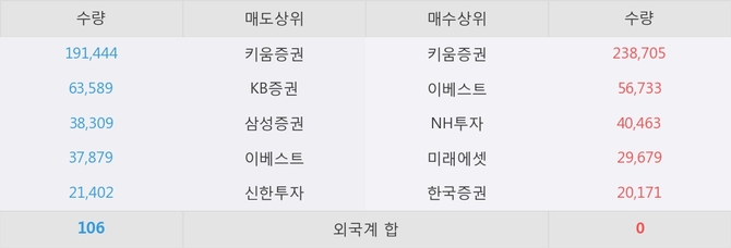 거래원 동향은 NH투자, 미래에셋 등이 매수 상위 목록에 나타나고 있다.