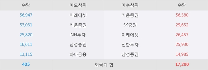거래원 동향은 미래에셋, 삼성증권 등이 매수 상위 목록에 나타나고 있다.