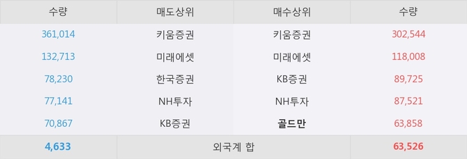 거래원 동향은 골드만, 미래에셋, NH투자 등이 매수 상위 목록에 나타나고 있다.