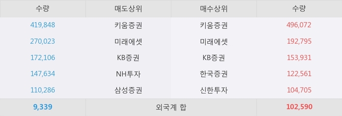 이 시각 주요 거래원은 미래에셋, 키움증권, KB증권 등이 매수 상위 창구에 자리하고 있다.