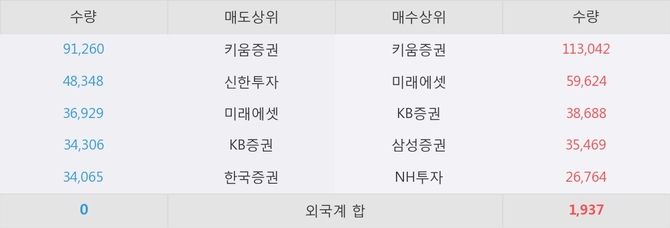 거래원 동향은 미래에셋, 삼성증권, NH투자 등이 매수 상위 목록에 나타나고 있다.