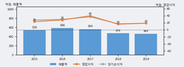 최근 3년간의 실적을 살펴보면, 매출액은 3년 연속 하락하고 있으나 그 하락폭은 줄어들고 있음을 알 수 있다.