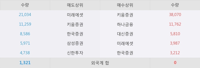 거래원 동향은 하나금융, 미래에셋 등이 매수 상위 목록에 나타나고 있다.
