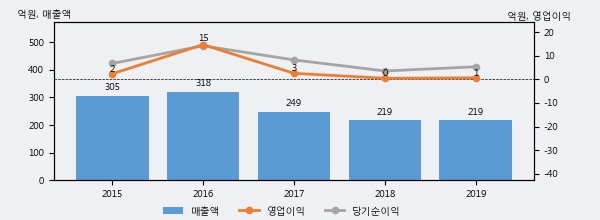 태원물산의 2019년 매출액은 전년과 동일한 219억원이고, 영업이익은 전년대비 40.0% 늘어난 1억원을 기록했다. 이 회사의 매출액 증감률과 영업이익 증감률은 각각 코스피 하위 43%, 하위 1%에 해당된다.