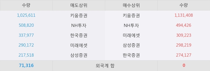 거래원 동향은 NH투자, 미래에셋, 삼성증권 등이 매수 상위 목록에 나타나고 있다.