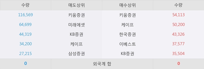 현재 거래원 동향은 키움증권, 케이프, 한국증권 등이 매수 상위 목록에 나타나고 있다.