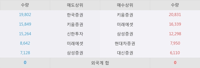 거래원 동향은 미래에셋, 삼성증권 등이 매수 상위 목록에 나타나고 있다.