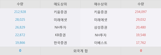 거래원 동향은 미래에셋, 삼성증권, NH투자 등이 매수 상위 목록에 나타나고 있다.